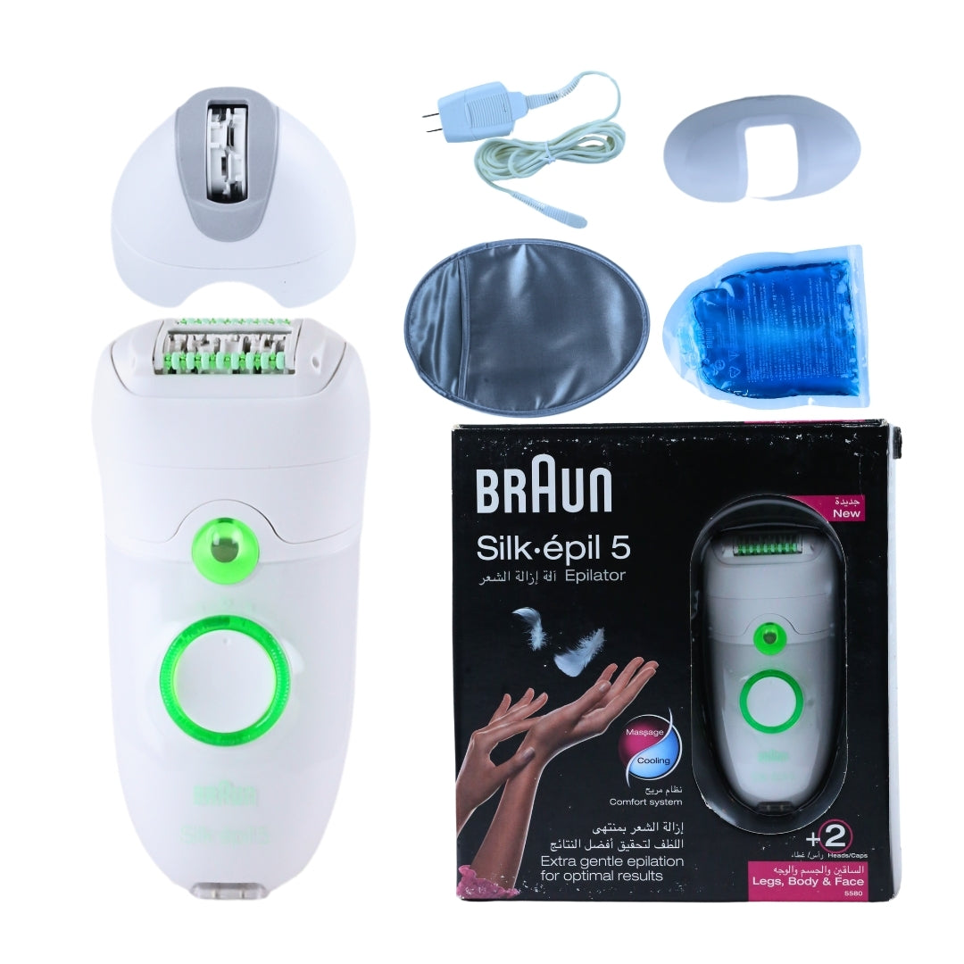 Experience smooth and flawless skin with the BRAUN Silkepil 5 Legs, Body & Face - 5580. This versatile epilator removes even the shortest hairs, leaving you with long-lasting results. With the added bonus of a gentle facial cap, you can now achieve salon-worthy results in the comfort of your own home!