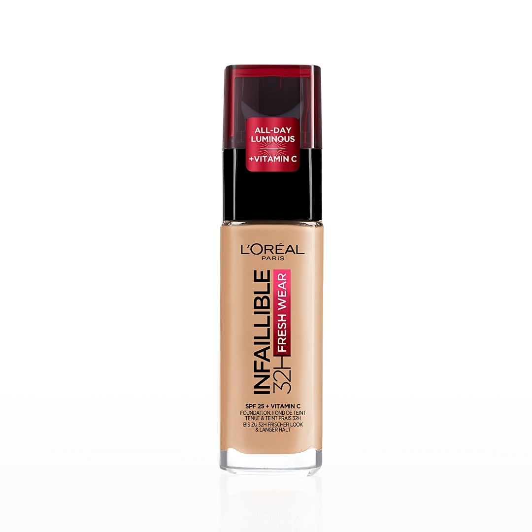 Experience flawless, long-lasting coverage with Loreal Paris Infallible 32H Fresh Water Foundation. Its 32-hour formula, combined with SPF 25+ and vitamin C, not only provides a natural linen shade but also protects and nourishes your skin. Say goodbye to touch-ups and hello to a fresh, radiant complexion.