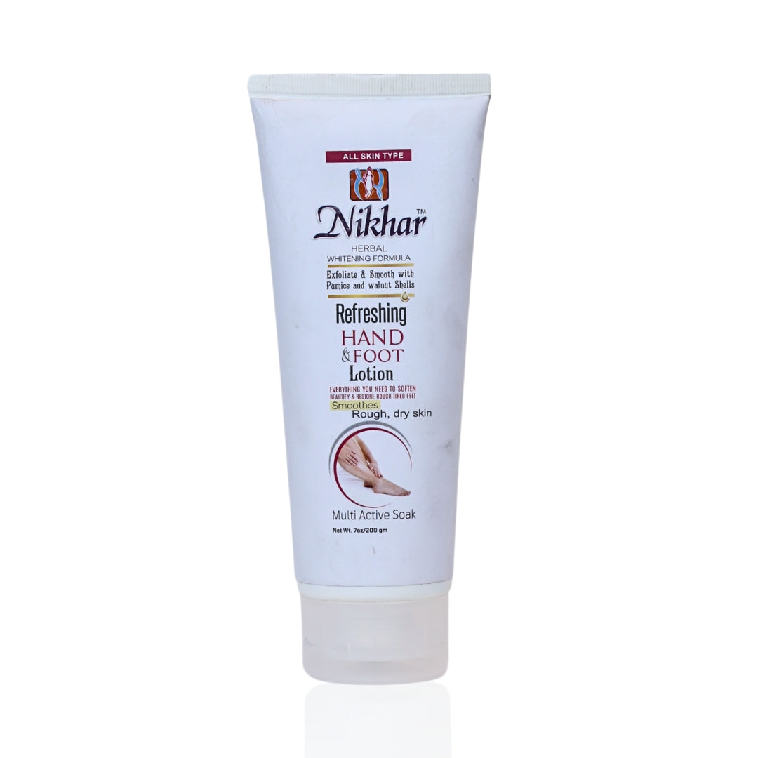 Nikhar Herbal Refreshing Hand and Foot Lotion rejuvenates and nourishes dry skin. Its natural ingredients provide long-lasting moisture, leaving your hands and feet feeling soft and smooth. Avoid harsh chemicals and experience the benefits of herbal remedies.