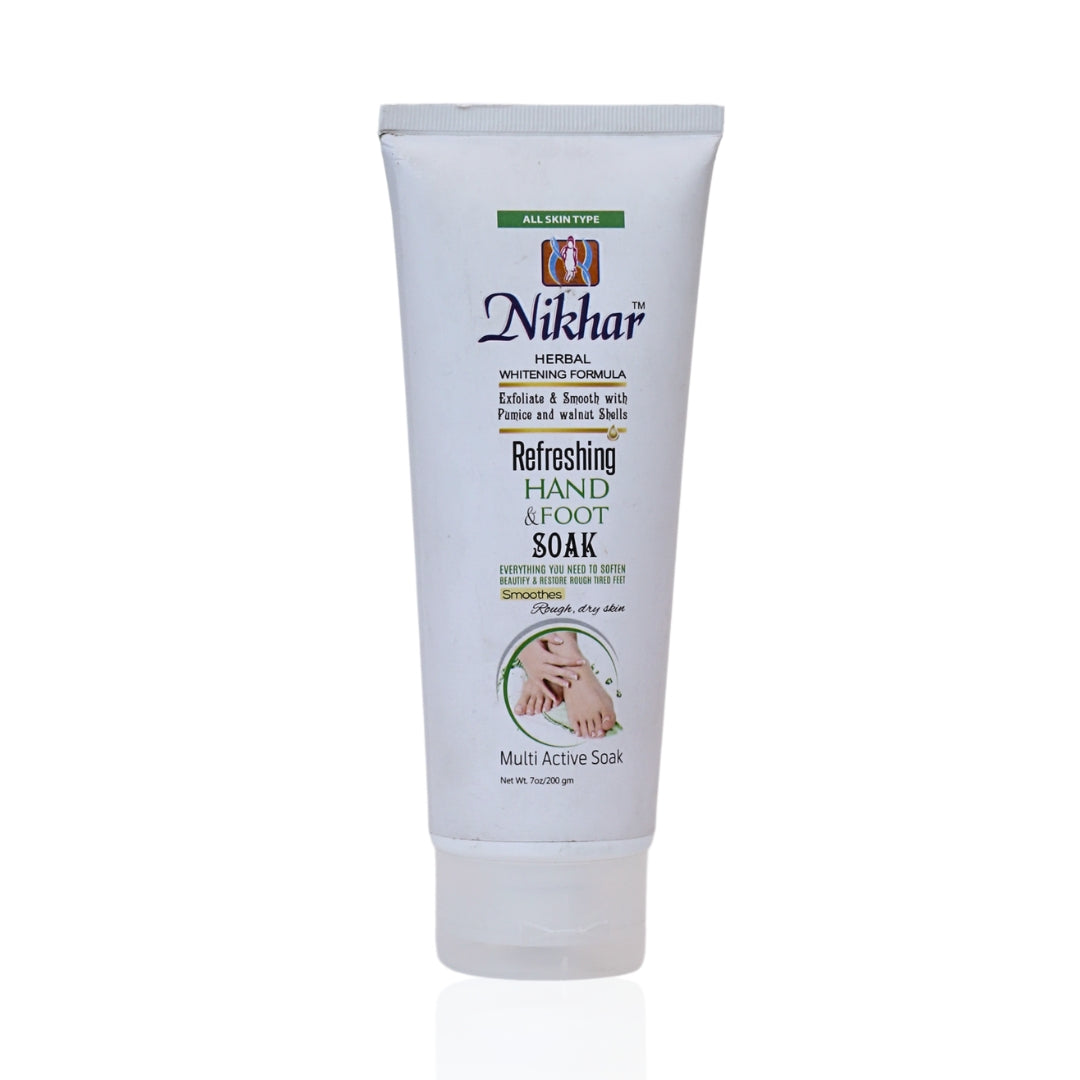 Pamper your hands and feet with Nikhar Herbal Refreshing Hand and Foot Soak. Made from natural ingredients, it cleanses, refreshes, and revitalizes tired skin. With its soothing properties, it effectively removes impurities and leaves skin feeling soft and rejuvenated. Experience the benefits of herbal therapy today.