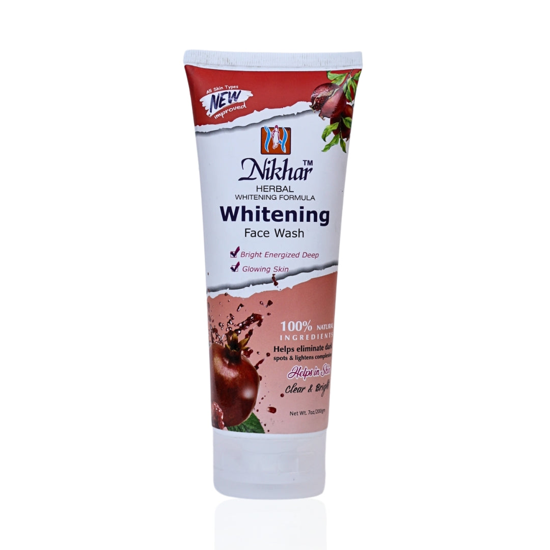 Experience the power of nature with Nikhar Herbal Whitening Pomegranate Face Wash. Gently cleanse your skin with this 200gm product, filled with enriching pomegranate extracts that promote a brighter, fresher, and more radiant complexion. Say goodbye to dull skin and hello to a natural glow with Nikhar Herbal Face Wash.
