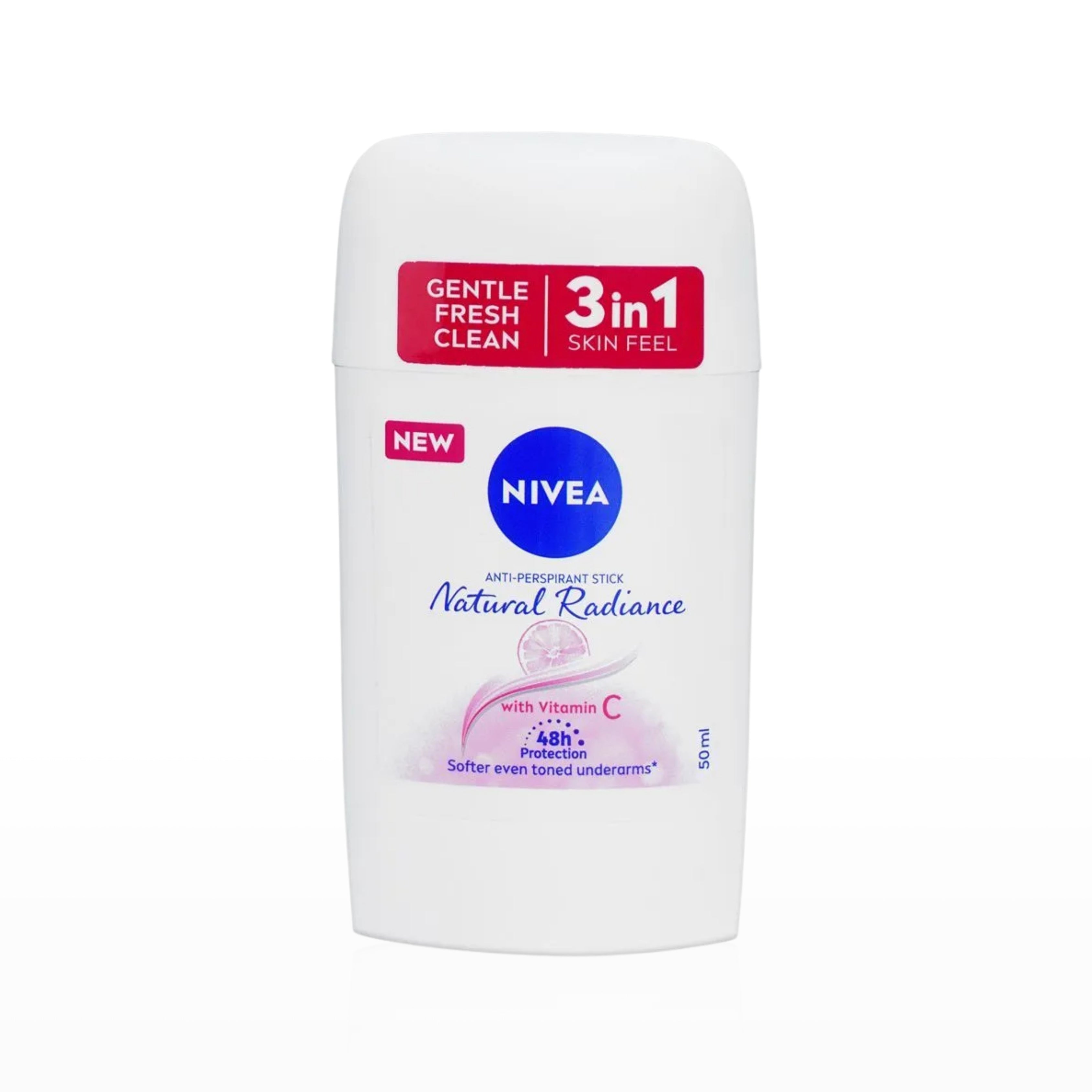 Experience all-day freshness with Nivea Natural Radiance Anti-Perspirant Stick! Infused with Vitamin C, this long-lasting formula keeps sweat and odor at bay while nourishing skin for a radiant glow. Stay confident and protected with this must-have addition to your daily routine.